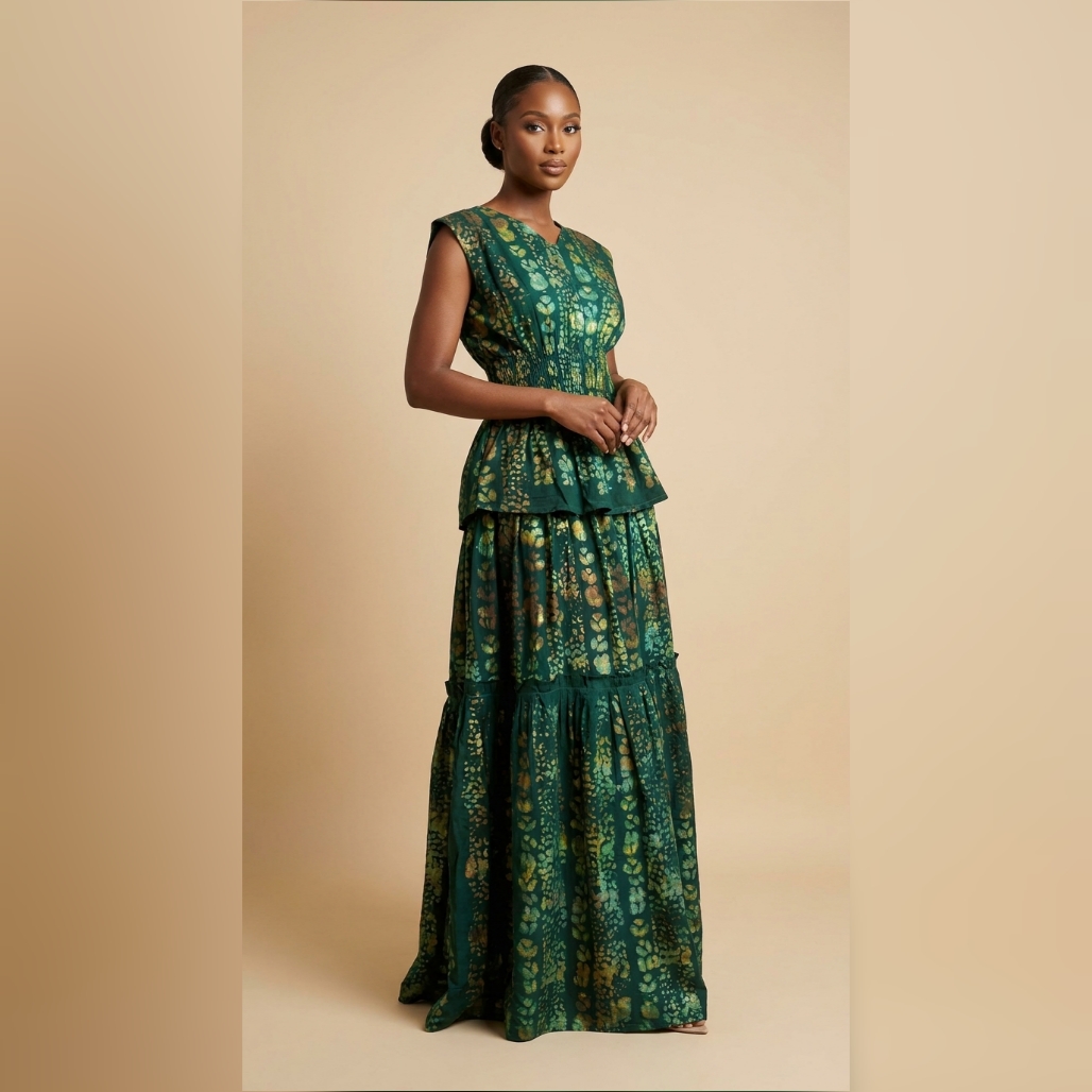 Simi twirl is wearable Art made for real life. Each adire pattern tells its own story, it is expressive, free, and beautifully perfect, inspired by nature and designed for effortless elegance. This tiered maxi dress is all about movement and grace. The smocked bodice hugs gently, giving you a flattering, secure fit, while the layered skirt cascades down in soft, fluid tiers. Made from breathable fabric, it keeps you comfortable while still delivering a rich, elevated look. It’s perfect for moments when you want to feel grounded, beautiful, and completely at ease in your skin.